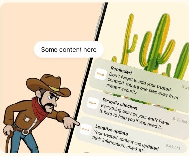 FR-ANK is a 🤠 safety app 🌵 for people who live alone. It sends daily notifications for you to confirm your wellbeing. If you don't respond, it notifies your chosen contacts to check in on you. Perfect for seniors, single professionals, and anyone living independently.